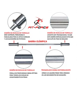 Barra Olímpica 1500mm marca Fit-Force de alta gama con rodamientos