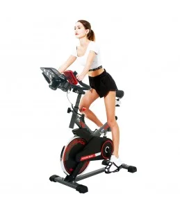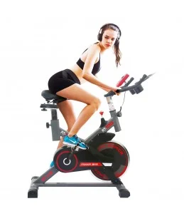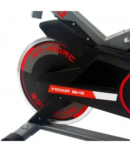 Es una rueda pesada de acero, conectada al eje de los pedales. La rueda de inercia suelen ser muy pesadas al redor de los 16 kilos, aunque las podemos encontrar más ligeras. Su utilidad es vital y acumula la energía cinética simulando así el movimiento normal de una bicicleta, la inercia del movimiento. Esto permite un pedaleo normal.